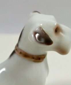 Some canine porcelains have such amazing expressions that they almost seem to look straight into your heart. This little guy does just that! Designed for Bing & Grondahl by Lauritz Jensen, he sits 2 1/4″ tall x 1 1/2″ long x 1 1/4″ wide. He is in excellent condition, done in soft creamy white with touches of soft caramel, dark chocolate brown and black. He also sports a delicately detailed, hand-painted collar and he has a beautiful high gloss finish. He is a wonderful way to start a B&G canine collection (see also the matching B&G standing Terrier we have). He would also look just adorable on your nightstand or vanity!