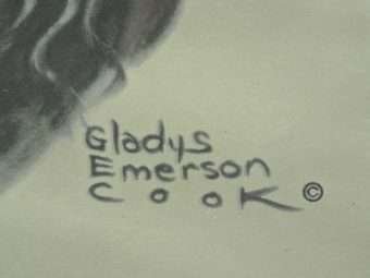 This original print by Gladys Emerson Cook is in excellent condition, without any fading, creases, or marks. It has her signature and a copyright symbol. See full details below.