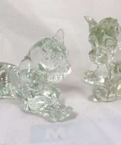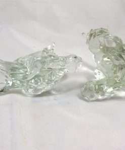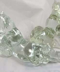 These adorable glass boxers look like the very best of friends. One is stretched out in a comfortable pose, and the other is seated with a sweet and curious expression on it’s face. Both will immediately remind you of those wonderful “puppy days” with your boxer! They were designed by Kenneth R. Haley (1946-1973), a master glass mold maker and the son of Reuben Haley, also a well- known glass designer. These pieces were produced by The American Glass Company. We are offering these two pups for sale as a pair because they look so amazing together! Sold as a set.