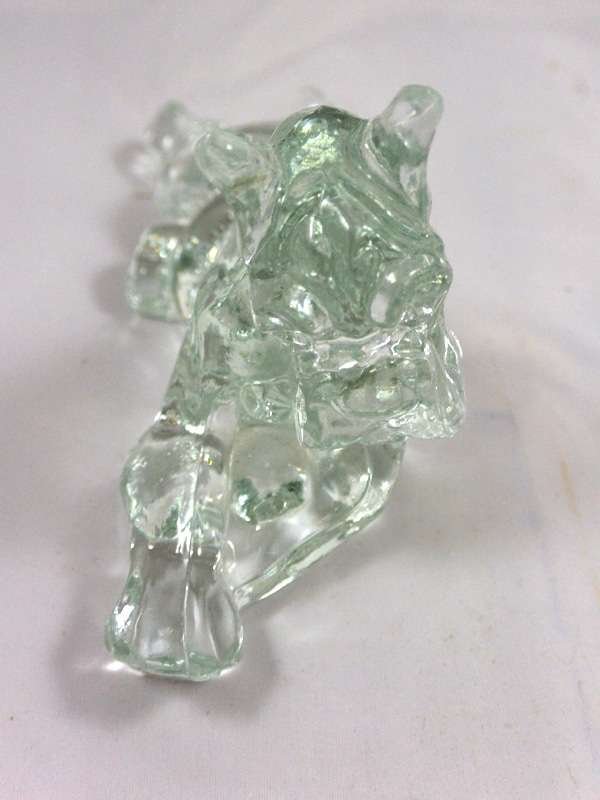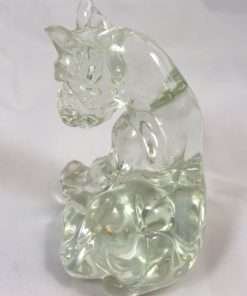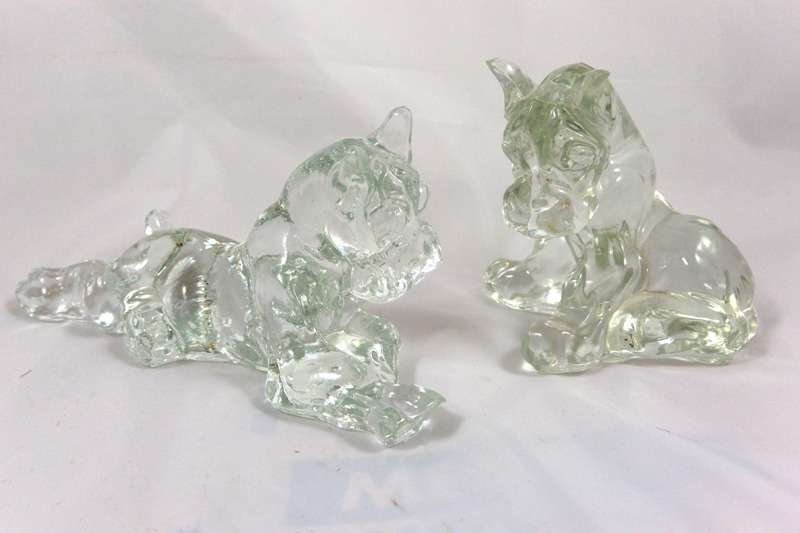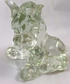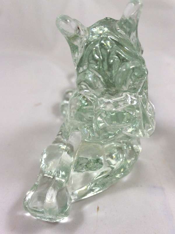 These adorable glass boxers look like the very best of friends. One is stretched out in a comfortable pose, and the other is seated with a sweet and curious expression on it’s face. These pieces were produced by The American Glass Company. See full details below.