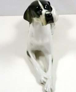 This striking black & white, Pointer dog was hand-made and hand-painted in the Lomonosov porcelain factory in St. Petersburg. Founded in 1744, by Peter the Great’s daughter, Empress Elizabeth, Lomonosov porcelain is one of the oldest porcelain manufacturers in Europe. The quality, demanded by the Imperial Romanov family, can still be found two and a half centuries later. This magnificent dog is quite large, reclining at 11 1/2″ long x 6″ tall x 4″ wide. She is in mint condition with a wonderful high gloss finish. She will make a gorgeous, stand alone decorative piece, or a perfect focal piece for any collection. We absolutely know that you will love her even more, once you see her!
