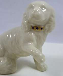 For those who love the subtle elegance of Lenox China, this gorgeous Cavalier King Charles Spaniel is a “must have” for your collection! With one paw delicately raised, this beauty sits 4″ tall x 3 1/2″ long x 2 1/4″ wide. She has the most wonderful collar that is done in gold paint and adorned with 3 blue “jewels” on both the front and the back. The overall detailing on this pup is gorgeous as well, showing an abundance of “swirling” fur. This pup was issued by Lenox in 1991, and made in the USA. She would make the perfect gift to your favorite King Charles Spaniel owner, or keep her for yourself to add a touch of light and sparkle to your home!