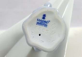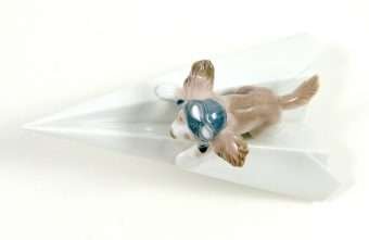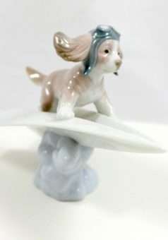 All Lladro creations are celebrations of life, and this wonderful, whimsical pup, with an aviator’s cap and goggles, perched on a paper airplane, is no exception! Supported by a fluffy, sky blue cloud, he is 4 1/2″ tall x 7″ long x 4 1/4″ wide.