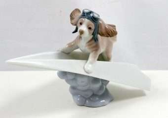 Lladro “Let’s Fly Away” 6665 Dog on Paper Airplane