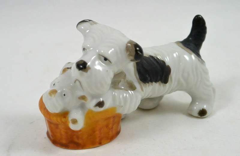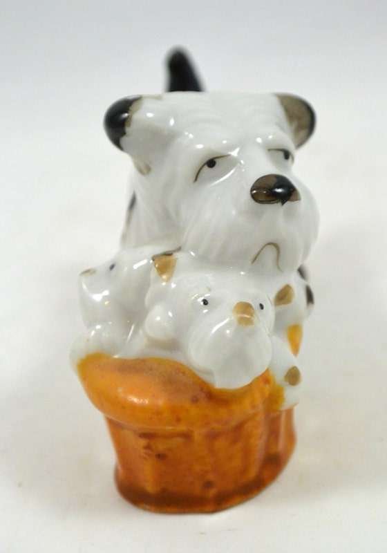 Occupied Japan Whimsical Terrier Dog with Puppies c. 1945-1952