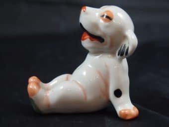 This little canine character named “Bonzo” is still as endearing and popular as he was when he first appeared as a cartoon character in 1922. He is marked on the bottom with the Gotha Pfeffer Porzellon mark from the period of 1934-1942, which makes him between 71-79 years old. See full details below.