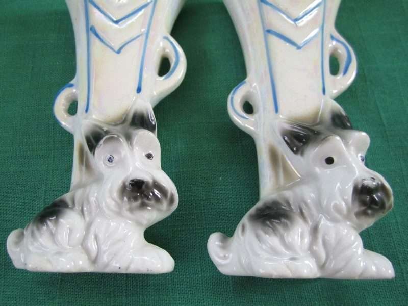 Pair of Vintage Lusterware Irridescent Scottie Bud Vases