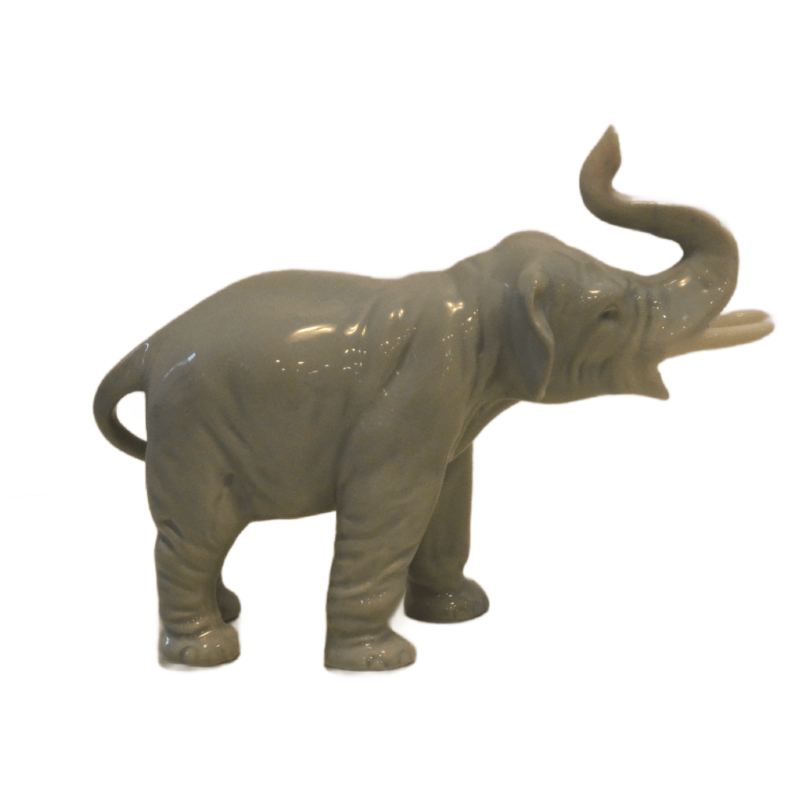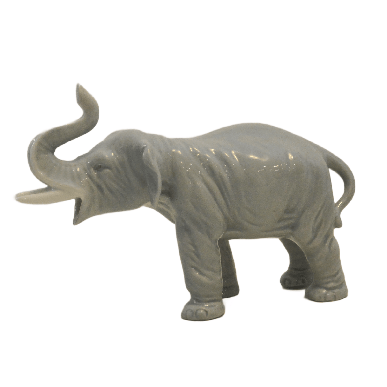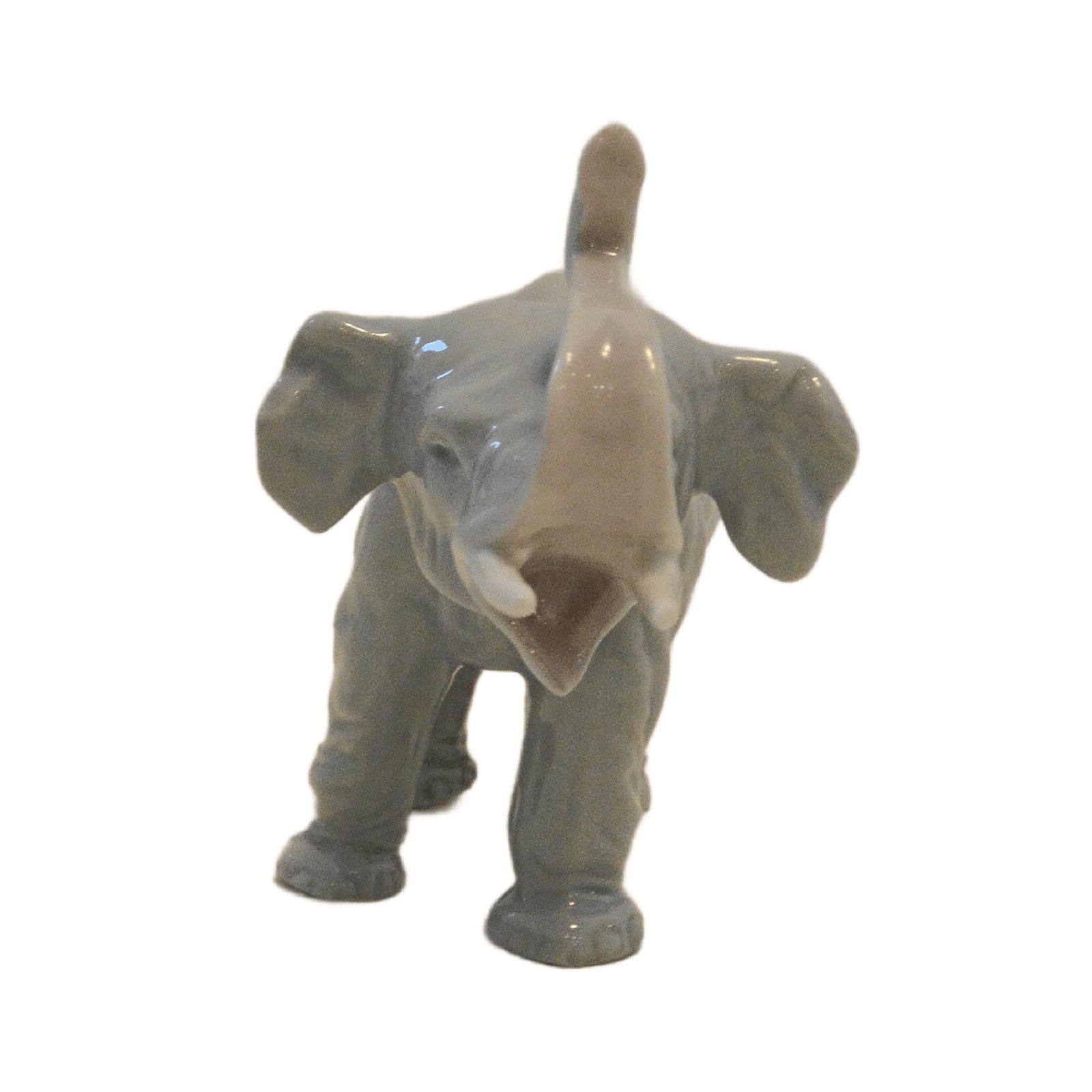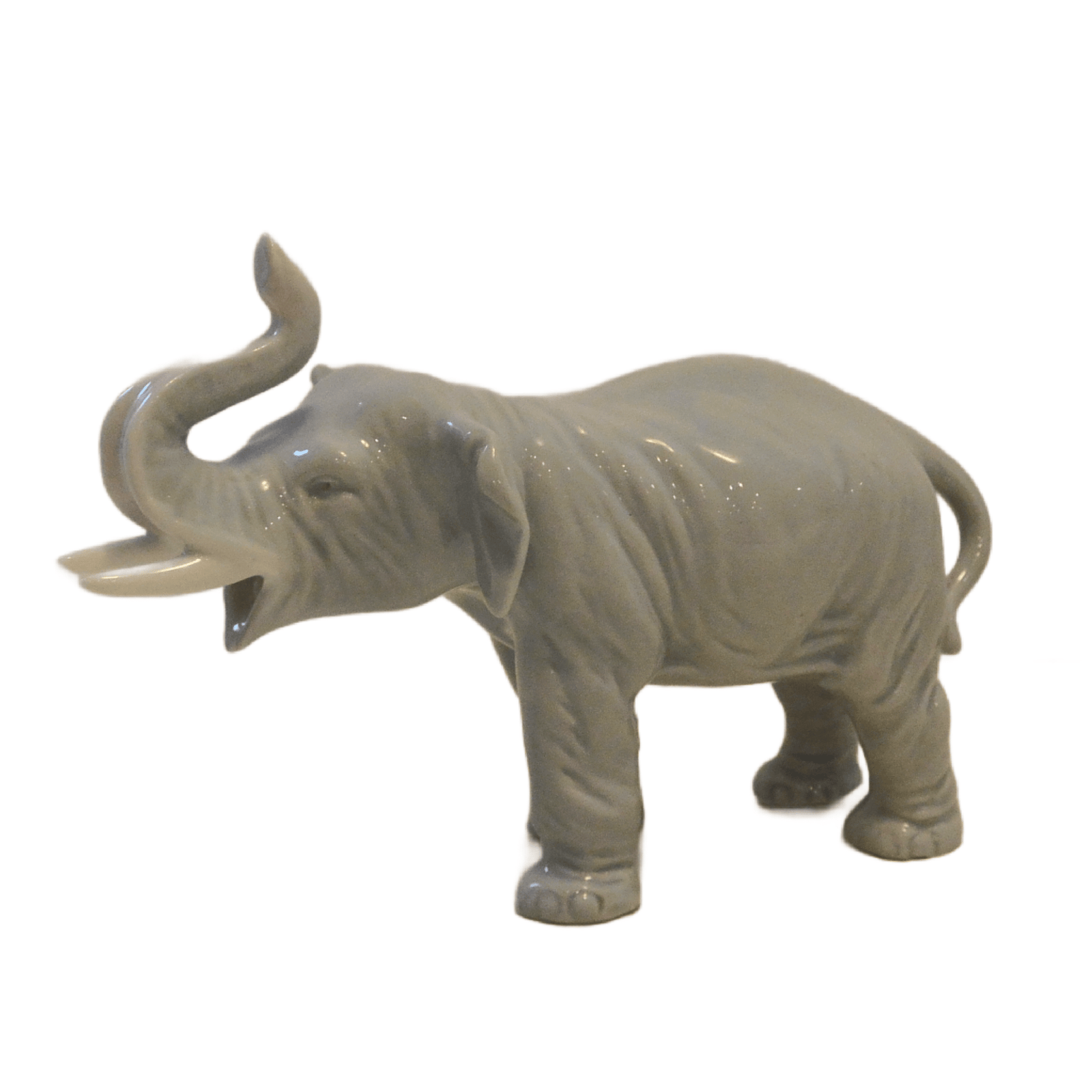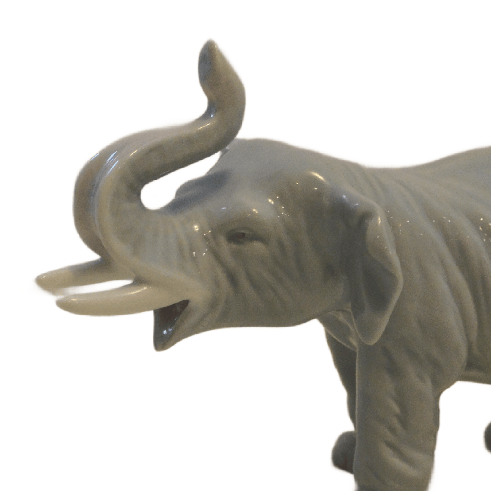 This exquisite, elephant figurine not only has her trunk up, she has her mouth open into what almost looks to be a joyous expression.