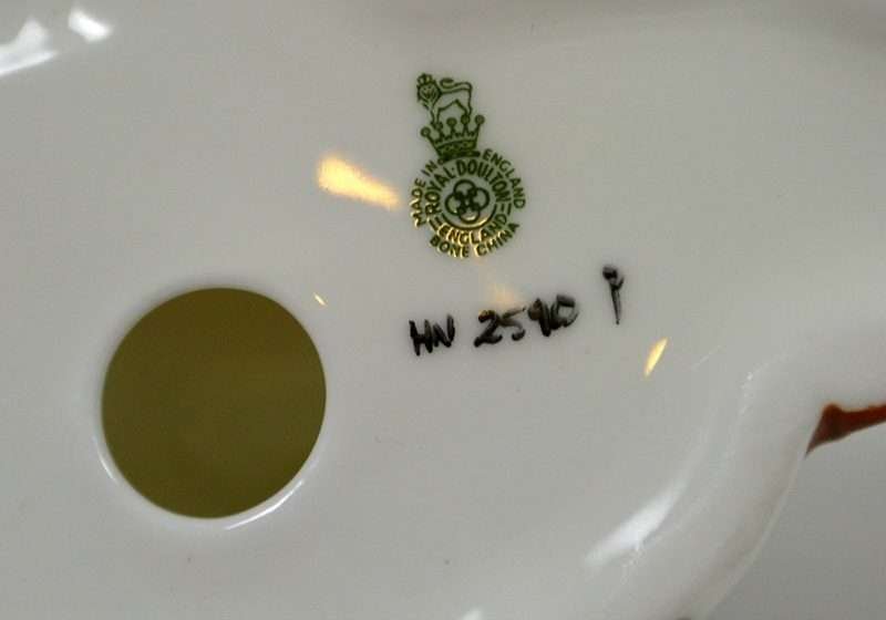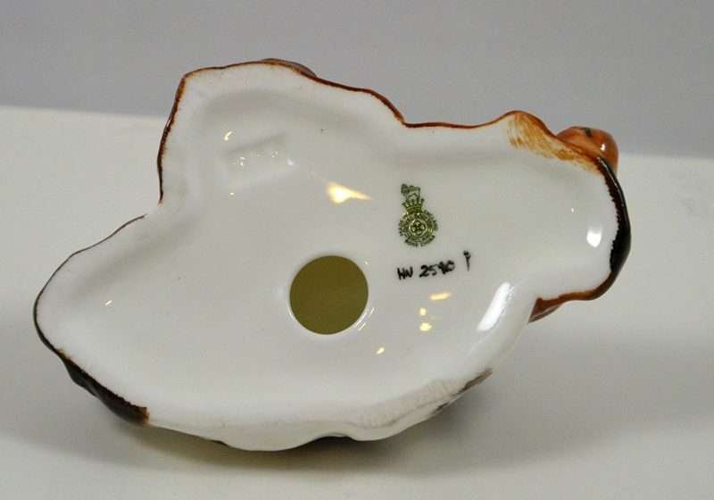 These pups were designed never to be separated and you can certainly see why. As the Cocker Spaniel dozes contently, the Springer Spaniel rests his head, but keeps a diligent watch. This precious pair are by Royal Doulton of England and they have both the early stamped and impressed marks. Numbered HN 2590, this pair is 2″ tall x 5″ long x 2 1/2″ wide, and is in excellent condition. Made of bone china and finished in a high gloss, they are the perfect gift to a Spaniel lover, and a wonderful addition to a Royal Doulton collection.