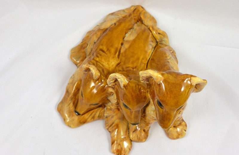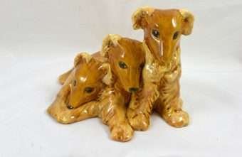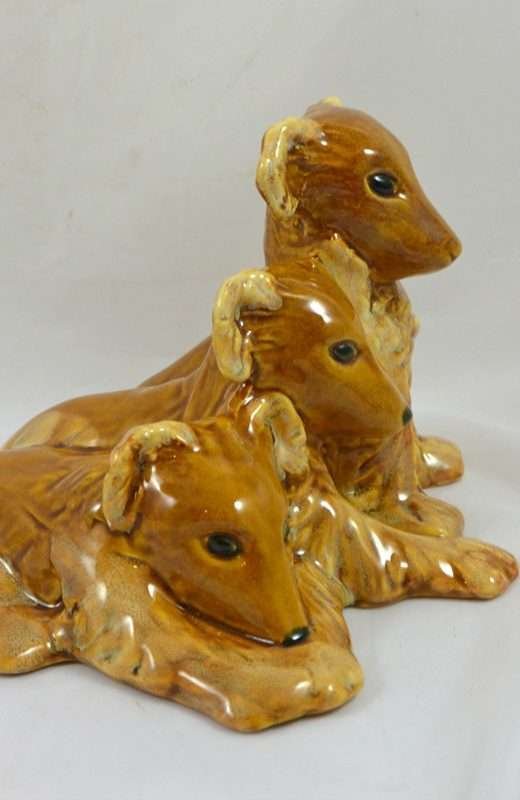 Royal Haeger “Bunch O’ Collie Pups” Amber Glaze c. mid-1940’s