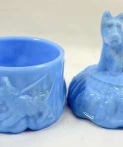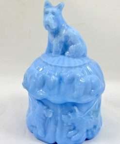 Vintage Akro Agate Blue Slag Glass Scottie Dog Powder Jar