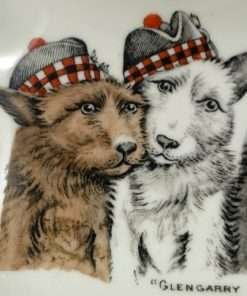 If these three terrier pups remind you of three old “furry-faced” Scots, you once knew…we think that is the intention of this wonderful pin tray! Each of these most likely Highland Terriers, are wearing traditional “Glengarry” hats, and look like they are seriously holding each other up!