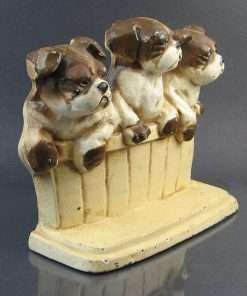 Vintage Cast Iron Door Stop, 3 Boston Terrier Pups