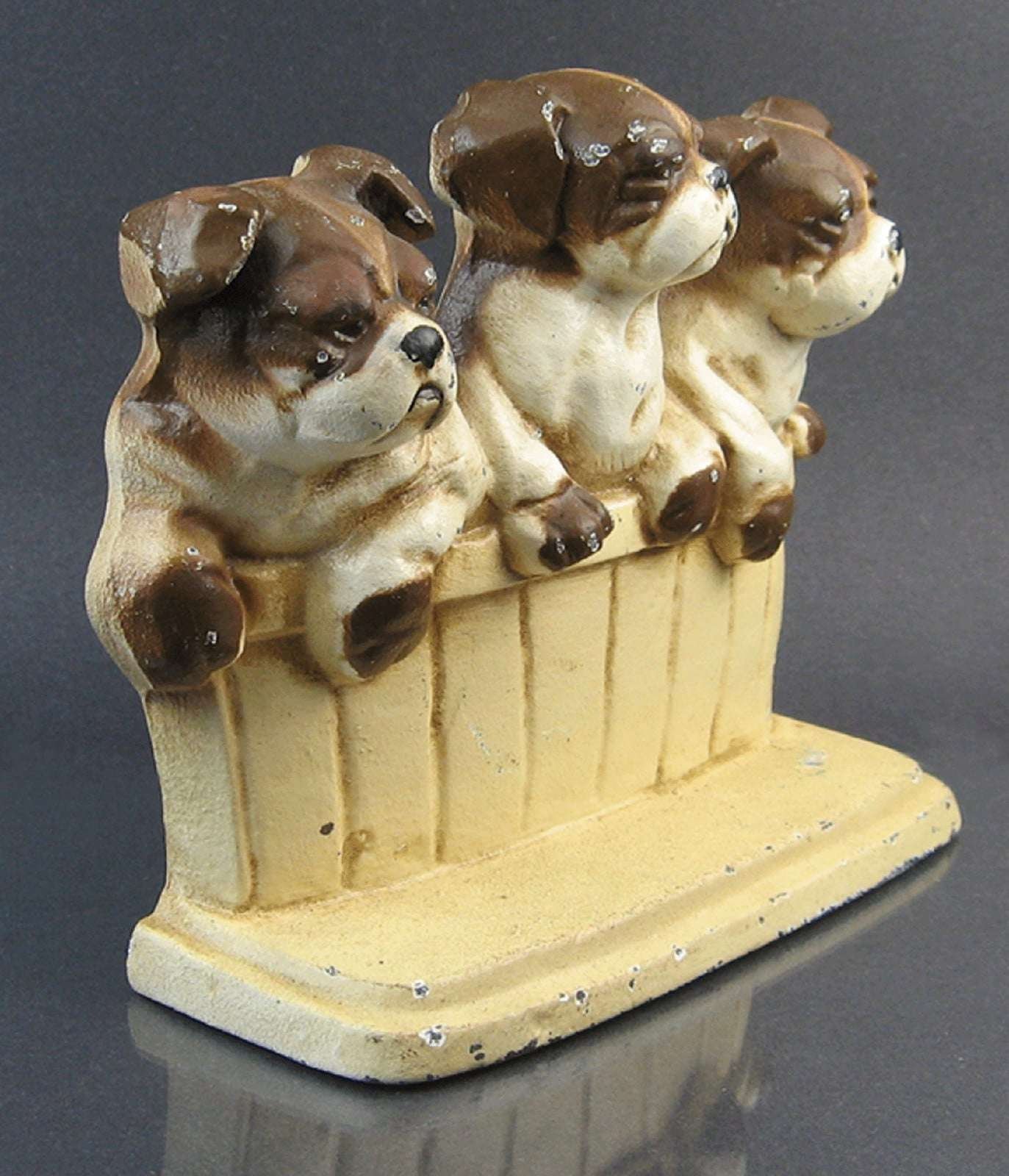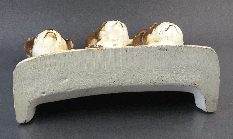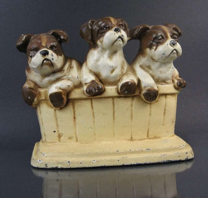 Vintage Cast Iron Door Stop, 3 Boston Terrier Pups