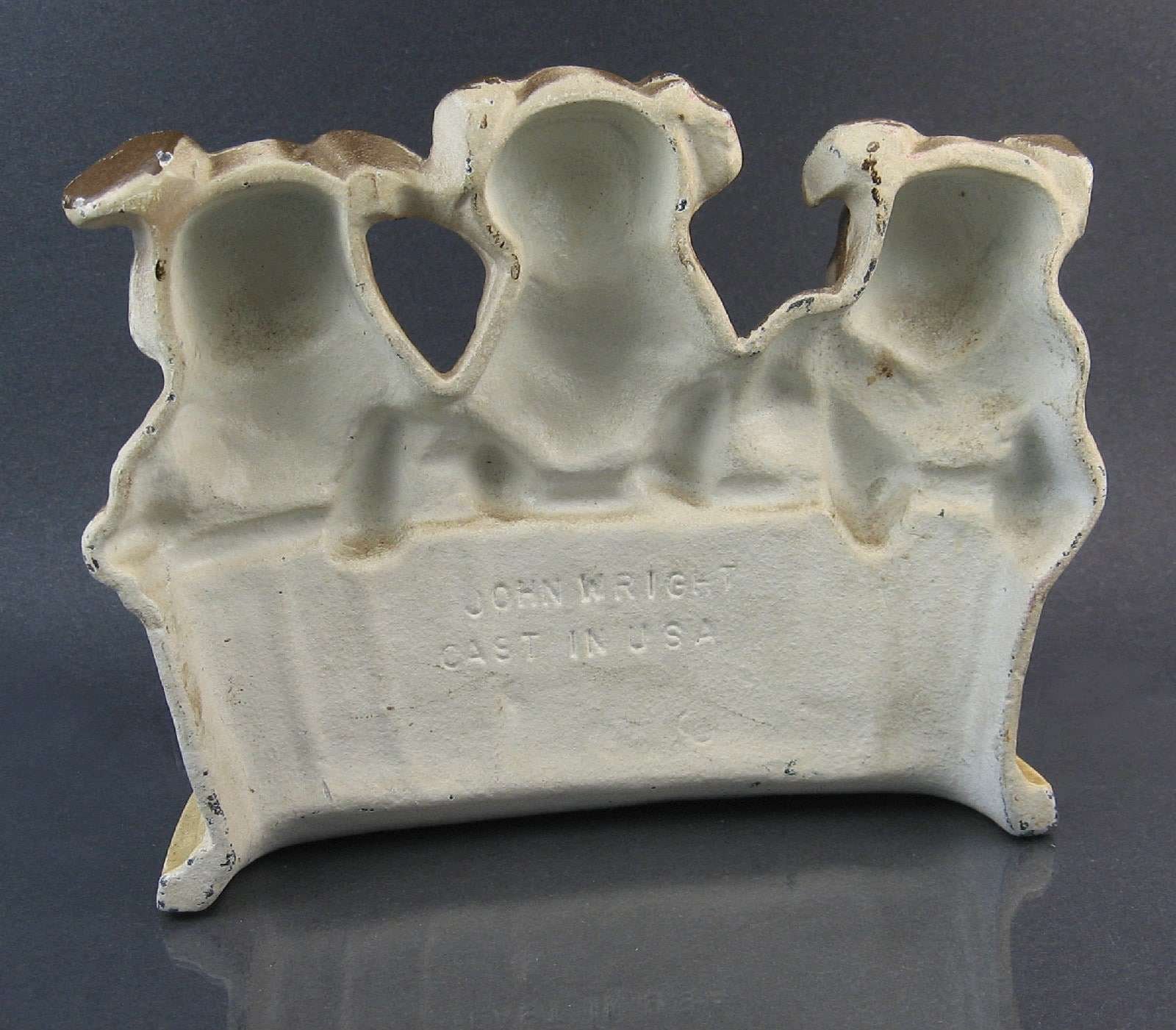 This vintage doorstop is painted cast iron, manufactured by John Wright, and cast in Pennsylvania. See full details below.