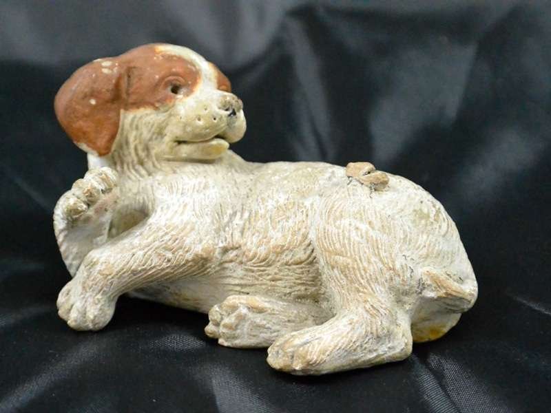Vintage Chalkware Puppy Sees Bug Circa 1930 – Early 1950’s
