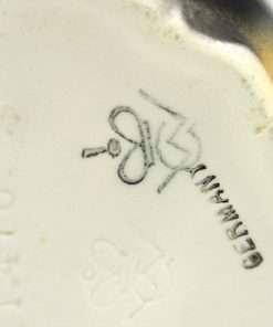 So unusual and unique, this whimsical, porcelain French Bulldog is also a jar. Its markings tell us that it is a Schaubach-Kunst from the Wallendorf porcelain factory, Thuringia, Germany, made between 1963 through the 1980’s.