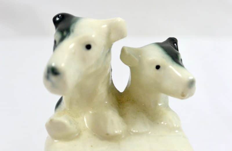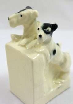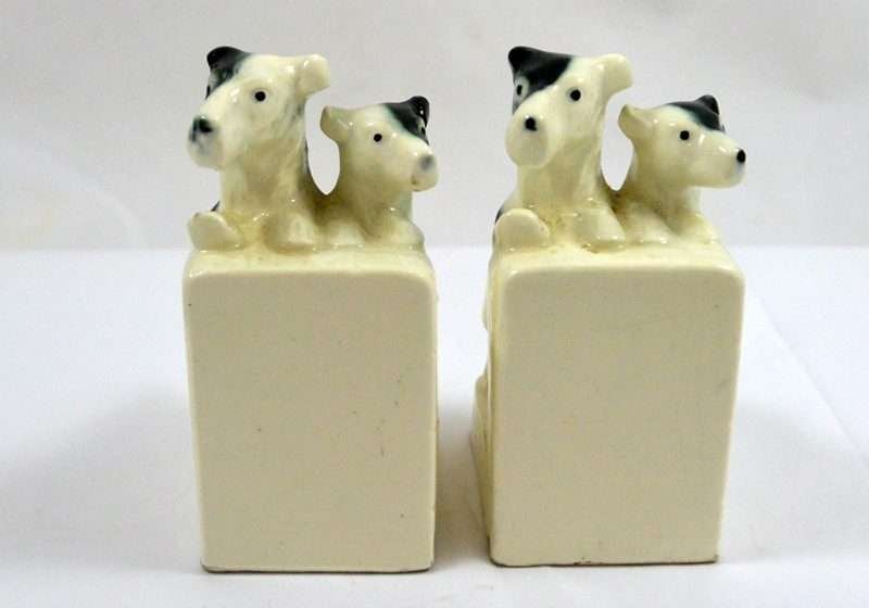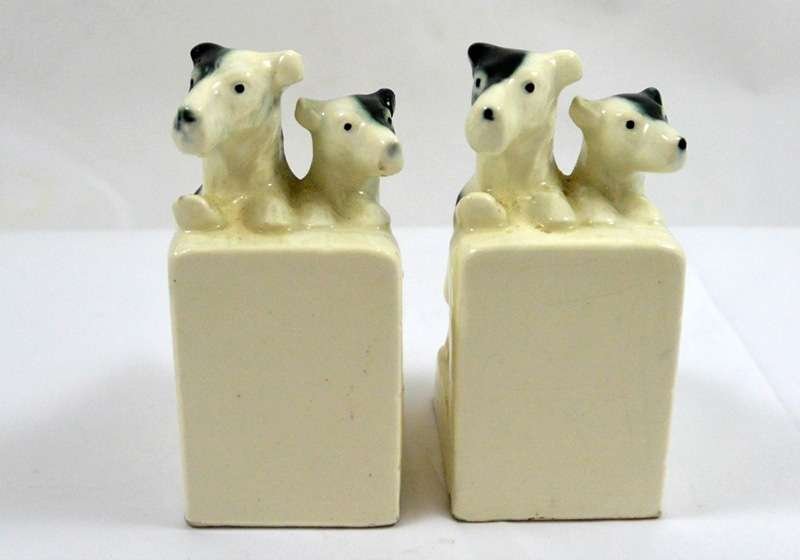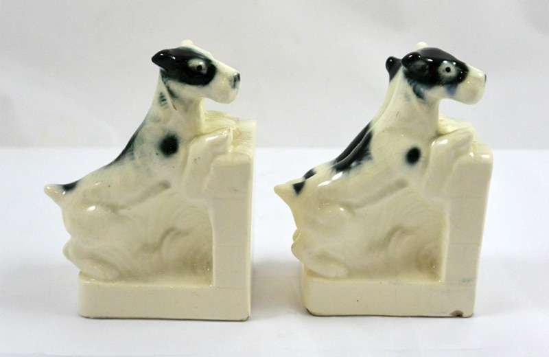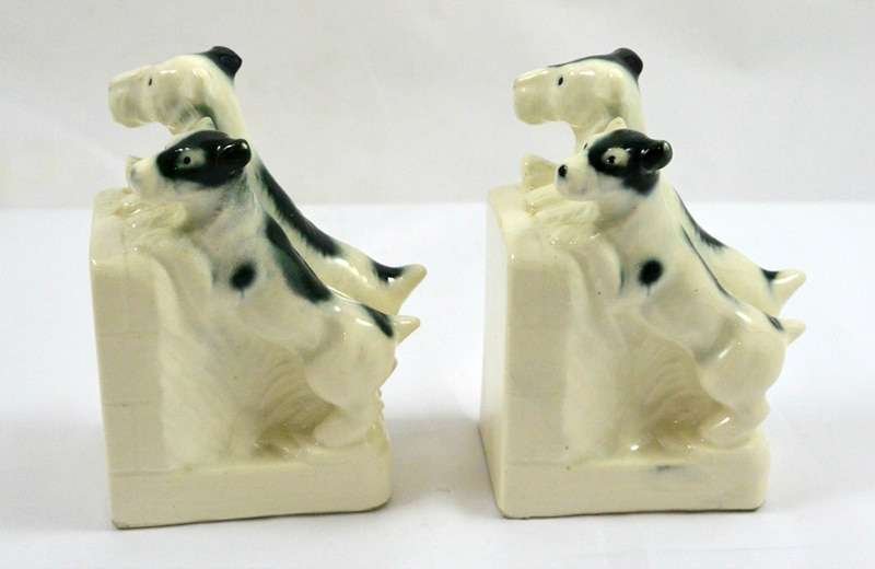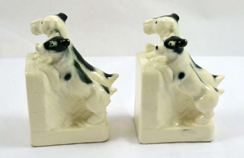 Vintage German Porcelain Terrier Pair Bookends