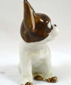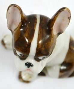 Sitting 3″ tall x 2 1/2″ long x 1 1/2″ wide, this hand painted porcelain French Bulldog is pure personality. Don’t know if it’s his droopy mouth, alert “pop” eyes or his ears, pointing to the sky, that makes him so endearing, but he is truly difficult to pass by without wanting to take him home.