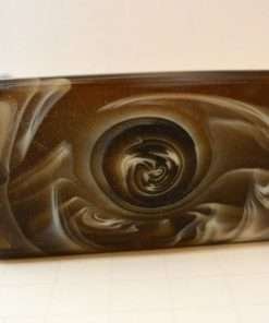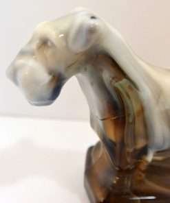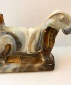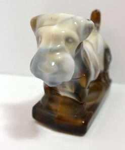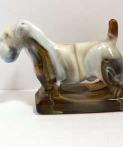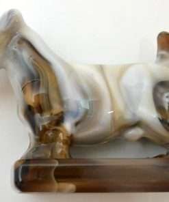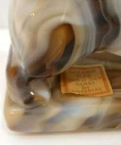 Created from slag glass in caramel, chocolate and cream…this Imperial Glass Scottie Dog looks good enough to eat! It is in mint condition with its original paper label. This beauty stands 3 1/2″ tall x 4 1/2″ long x 1 3/4″ wide.