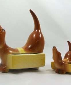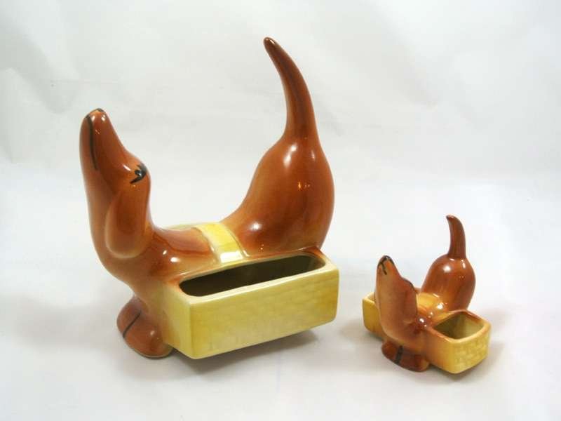 Vintage McCoy Dachsund Dresser Caddy and Matching “Mini” Caddy Set