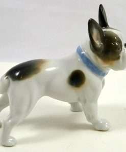 This exquisite French Bulldog has everything you would look for in a fine porcelain figurine. Beautiful detailing and a gorgeous color palette of snowy white, soft greys, “baby” blue and a wisp of pink, all come together to create a pup that you can’t help but touch! Created by the highly regarded porcelain manufacturer, Metzler & Ortloff, Ilmenau, Thuringia, Germany, it is a rare find, and he is in excellent condition. He stands 3 1/2″ tall x 4″ long x 2″ wide. He is a “must-have” for any Metzler & Ortloff collector, or “Frenchie” owner. We are sure that you will love him even more once you see him!