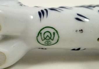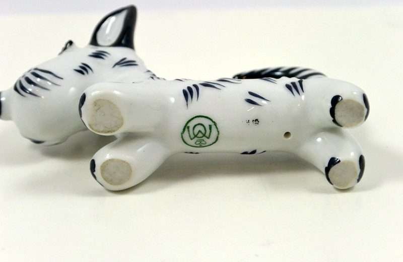 We are not sure which we love more about this fabulous Terrier dog…his eyebrows or his tail! Designed by the famous Austrian artist, Walter Bosse in the 1930’s, this unique pup is 2 1/2″ tall x 4″ long x 1 1/8″ wide. He is in excellent condition and has the Metzler & Ortloff back stamp on his underside. Such a perfect pup is a must-have for your Metzler & Ortloff canine collection. He is also a gift that will delight any dog-lover with his whimsical expression and Art Deco Style.