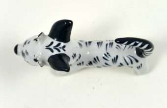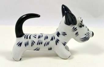 We are not sure which we love more about this fabulous Terrier dog…his eyebrows or his tail! Designed by the famous Austrian artist, Walter Bosse in the 1930’s, this unique pup is 2 1/2″ tall x 4″ long x 1 1/8″ wide.