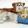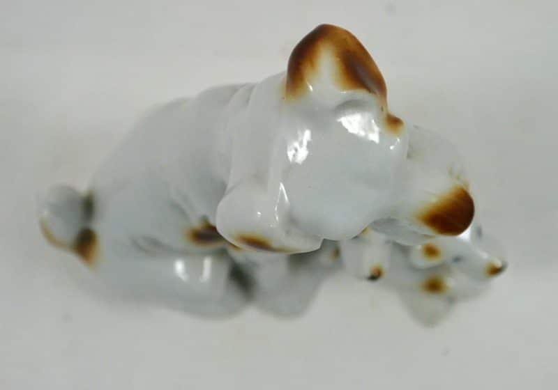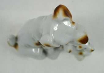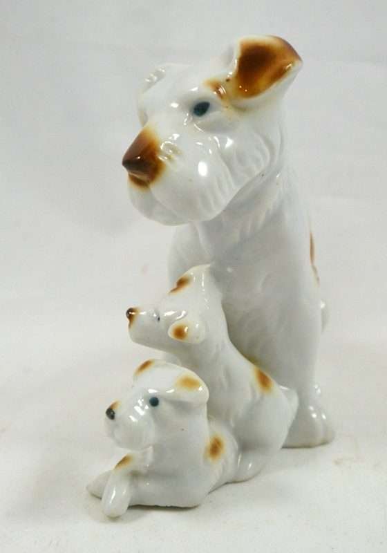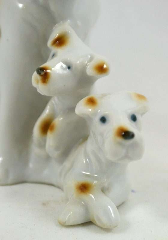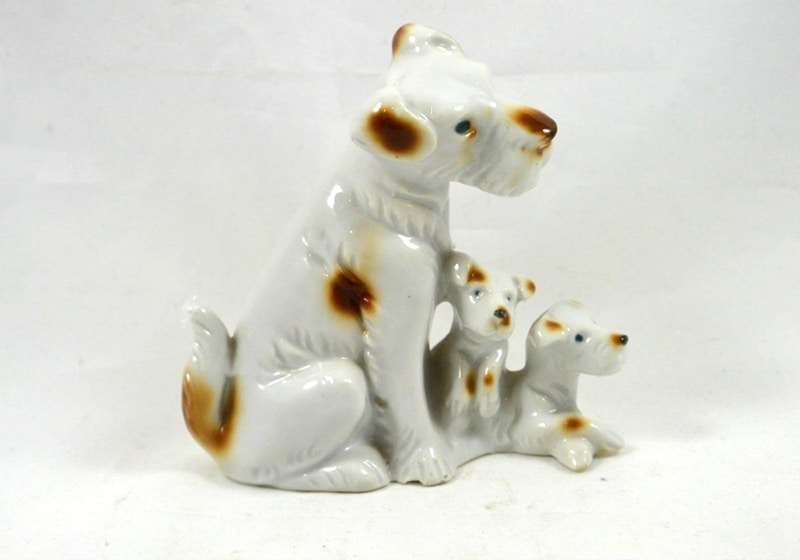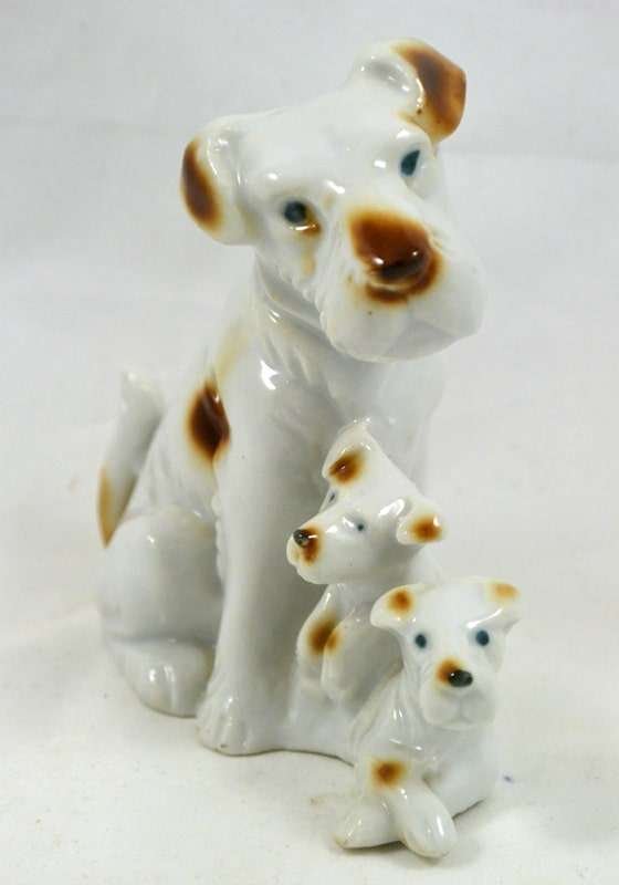 Vintage Porcelain Fox Terrier Dog with Puppies