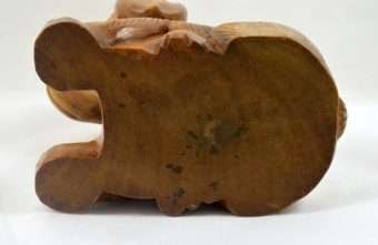 This wonderful, hand-carved pup captures the “Well, what now?” look that puppies do so well! Sitting almost “Sphinx-like”, he is 5 3/4″ tall x 5 1/2″ long x 3 1/4″ wide. The detailing is terrific.