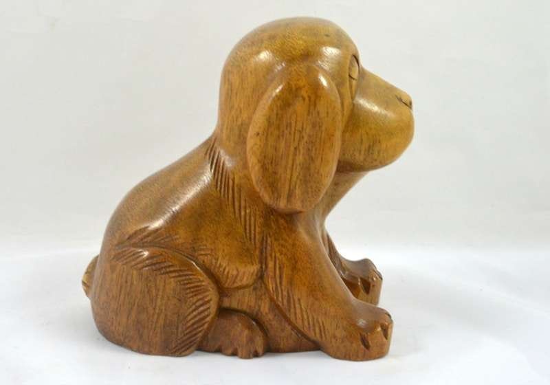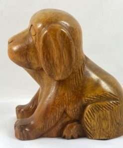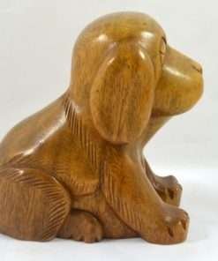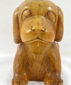 Got Puppy? This wonderful, hand-carved pup captures the “Well, what now?” look that puppies do so well! Sitting almost “Sphinx-like”, he is 5 3/4″ tall x 5 1/2″ long x 3 1/4″ wide. The detailing is terrific. If you like his nose…check out his cute tail! He is in excellent condition, and is just waiting to become your new best friend! As a stand-alone decorative piece, he would look great on a desk, side table or bookshelf. He would also look great amidst other wood carved dogs in a collection.