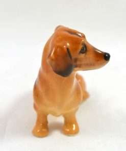 This petite, short-haired Dachshund dog is the perfect addition to your Dachshund or Royal Doulton collection. At 2 1/2″ long x 1 3/4″ tall x 1″ wide, this little guy has an adorable inquisitive look on his face.