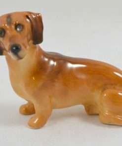 This petite, short-haired Dachshund dog is the perfect addition to your Dachshund or Royal Doulton collection. At 2 1/2″ long x 1 3/4″ tall x 1″ wide, this little guy has an adorable inquisitive look on his face.