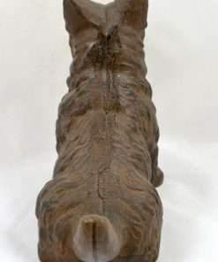 Beautiful detailing shows all over this substantial, cast iron Scottish Terrier figure. He has a vintage rust finish and sits 7″ tall x 10 1/2″ long x 4″ wide. Sitting so attentively, he would make the perfect “guard dog” doorstop, or a wonderful porch or garden figure.