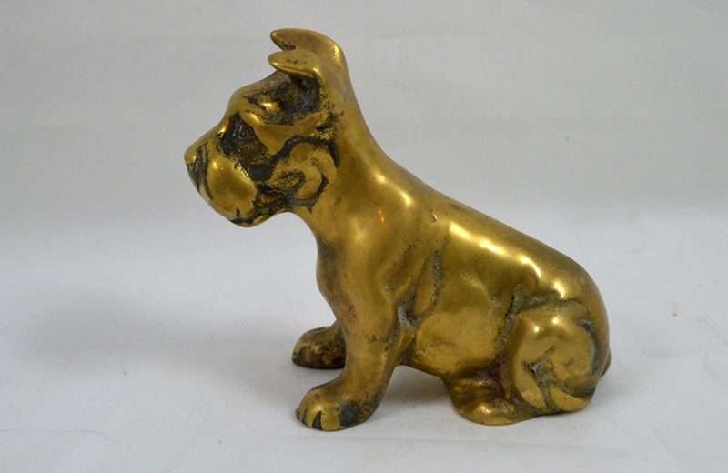 Vintage Solid Brass Schnauzer Dog Paperweight