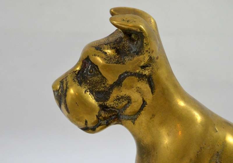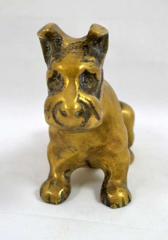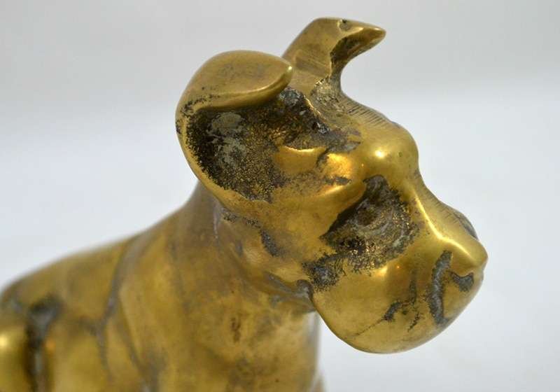Vintage Solid Brass Schnauzer Dog Paperweight