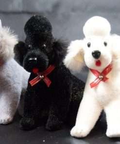 These Charming Poodles come from The Wagner Handwork Company, which was founded in the 1940’s and closed in 1998. They are made by hand from a paper and clay-based composition, and then covered or “flocked” with cotton fibers. See full details below.