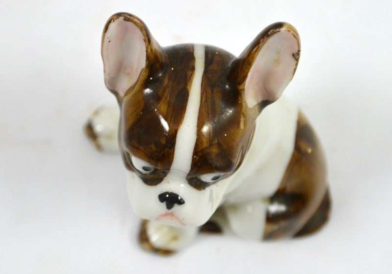 Vintage Hand Painted German Porcelain French Bulldog Figurine