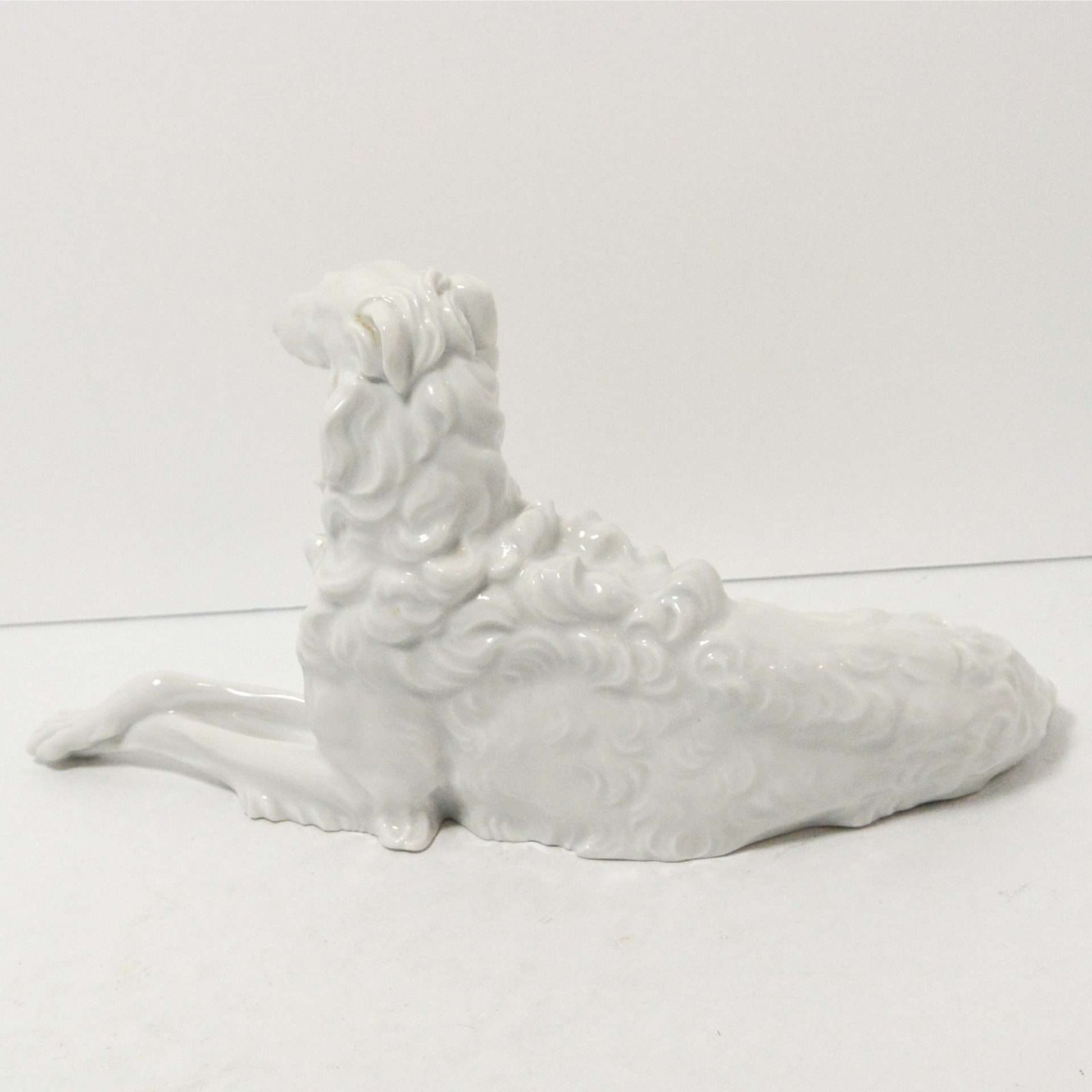 The porcelain is beautifully textured to show off this elegant dog’s natural curly fur, as well as the gentle, yet regal expression on its face.