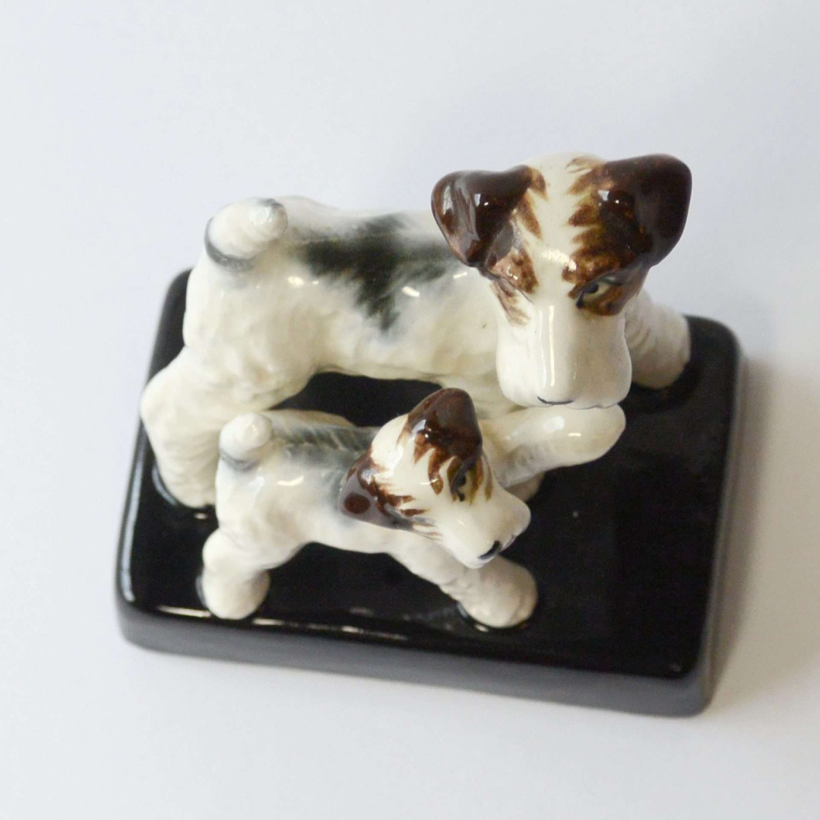 Vintage Wire-Haired Fox Terrier and Puppy Figurine