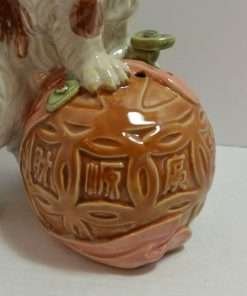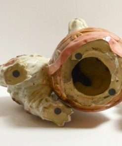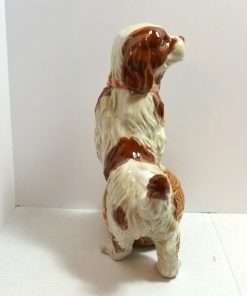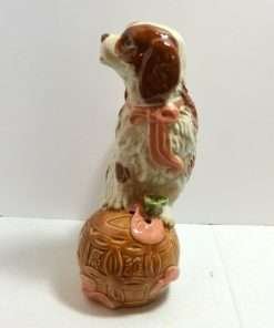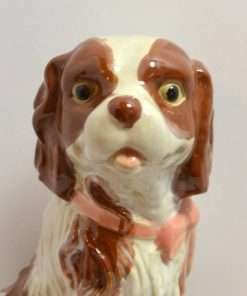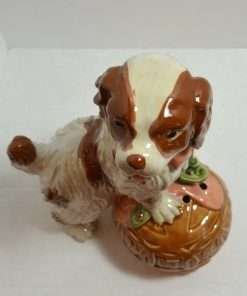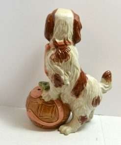 This charming dog is wearing a matching mauve pink ribbon collar, tied in a flouncy bow. She stands a full 12″ tall x 8 1/2″ long x 3 1/2″ wide, and she is in excellent condition.