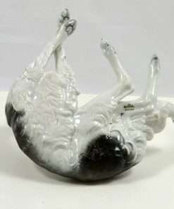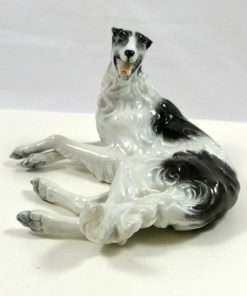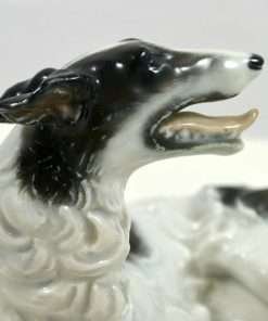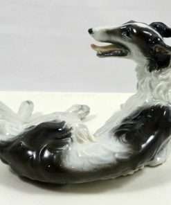 This stunning porcelain reclining Borzoi dog was produced by Rosenthal in the early 1950’s and originally designed by F. Heidenreich in 1934. It is a tremendous tribute to this designer’s ability to capture the Borzoi’s quiet dignity and graceful elegance.