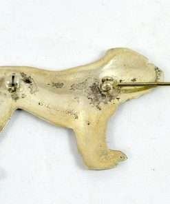 Putting his best “paw” forward, this sterling silver Bulldog is showing off his fabulous physique as well as a finely detailed profile, collar, fur lines and tail. He is mark “sterling” on the back, and his pin is in perfect working condition.